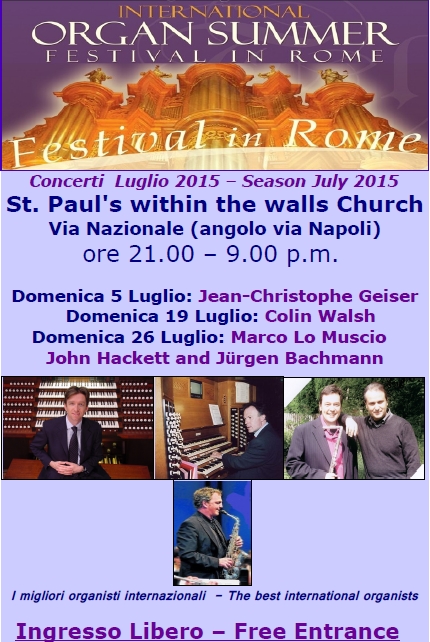 MASTER CLASSES (St Paul's within the walls church): Lunedì 20 Luglio – Monday of July 20 (from 9.30 a.m. until 5.00 p.m.) |